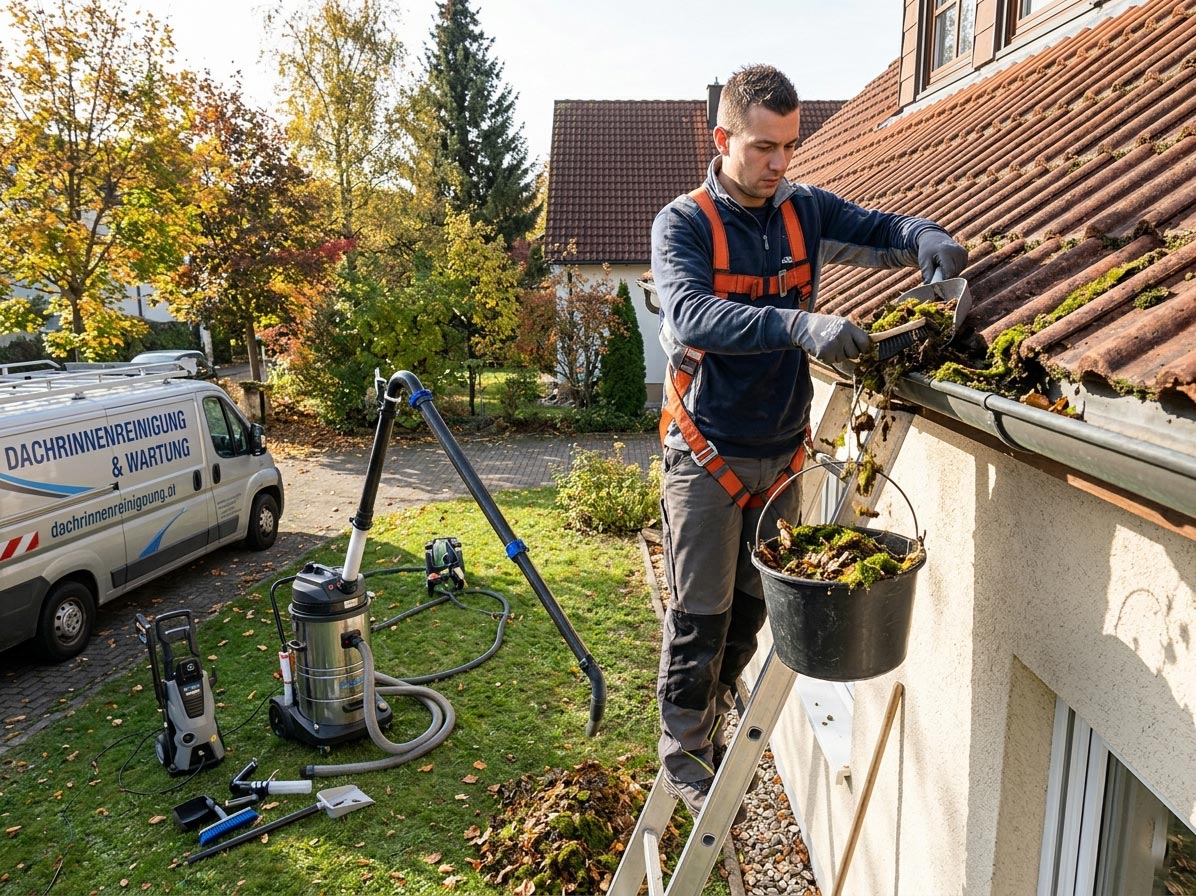 Überlassen Sie die gefährliche Arbeit auf der Leiter den Experten. Wir reinigen nicht nur, wir sorgen dafür, dass das Wasser wieder ungehindert fließen kann – schnell, sauber und fachgerecht.